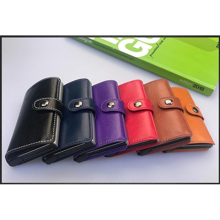 Podzitamandira mawonekedwe owoneka bwino komanso owoneka bwino, wokhala ndi makhadi amawonetsa kukongola komanso kukhudza kwa chithumwa cha retro. Kapangidwe kake kothandiza kumaphatikizapo chipinda cha bokosi lachitsulo chomwe chimayendetsedwa ndi batani lotulutsa, lomwe limatha kukhala ndi makadi 5-6. Kuonjezera apo, matumba awiri mkati mwa chikwama amapereka malo kwa makhadi ena monga malayisensi oyendetsa, makhadi a inshuwalansi, pambali pa kanyumba kakang'ono ka ndalama, kumapereka ntchito zonse muzofunikira zanu.